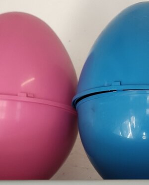 Semiguscio superiore ed inferiore per Uova di Pasqua realizzato in polipropilene , diametro 25 - altezza 36 - peso circa 375 gr.